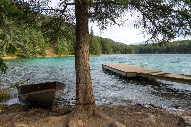 Just to the north of Jasper, you’ll find two adjacent lakes called Edith and Annette. They are both wonderfully peaceful, with views across the water to the mountains rising up behind up them.