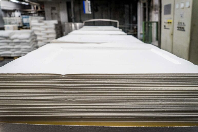 From the raw materials that are turned into a pulp, to the area where the dyes are added to give colour, through to the belts and rollers of the large paper machine, and the embossing and cutting – It’s a huge process just to end up with a piece of paper.