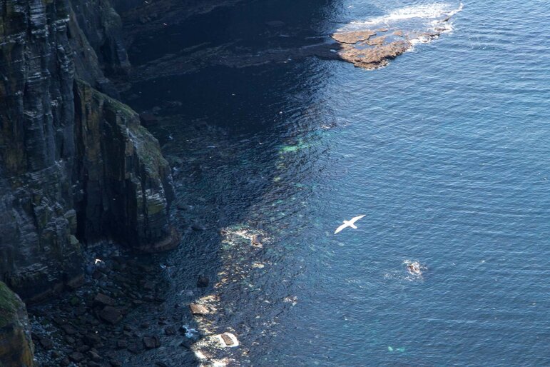 It’s estimated there are about 30,000 pairs during the nesting period, feeding on the natural buffet the wind and the waves bring in for them. In particular, the area is known for significant numbers of guillemot, razorbill, puffin, kittiwake and fulmar.