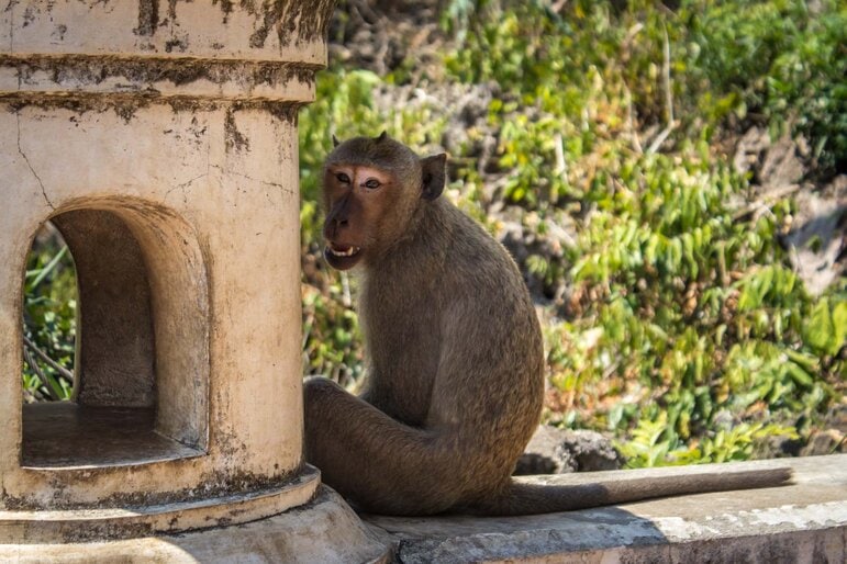 The monkeys are one of the hazards of visiting the Khao Luang Cave in the Thai city of Phetchaburi.