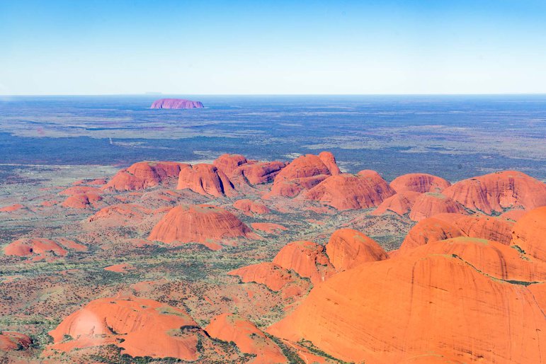 Flying from Alice Springs towards Uluru, the orange plains of Central Australia stretch out in every direction. It’s easy to spot anything rising up from these flat lands and so, about 40 minutes into the flight, I see a red mound interrupting the horizon.